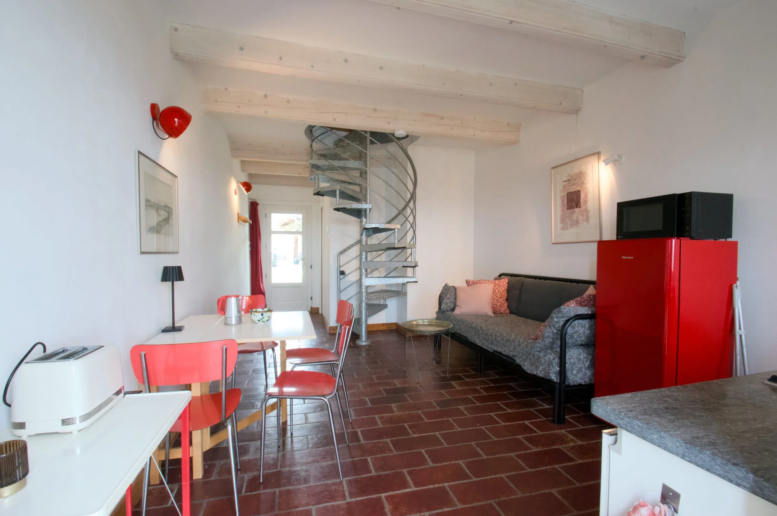 This apartment is 50 m2 and extends over two floors. On the upper floor there is a bedroom with a double bed and a single daybed. On the lower floor there is a sofa bed for 1 - 2 persons. The apartment has underfloor heating. There is an open solution between the floors.